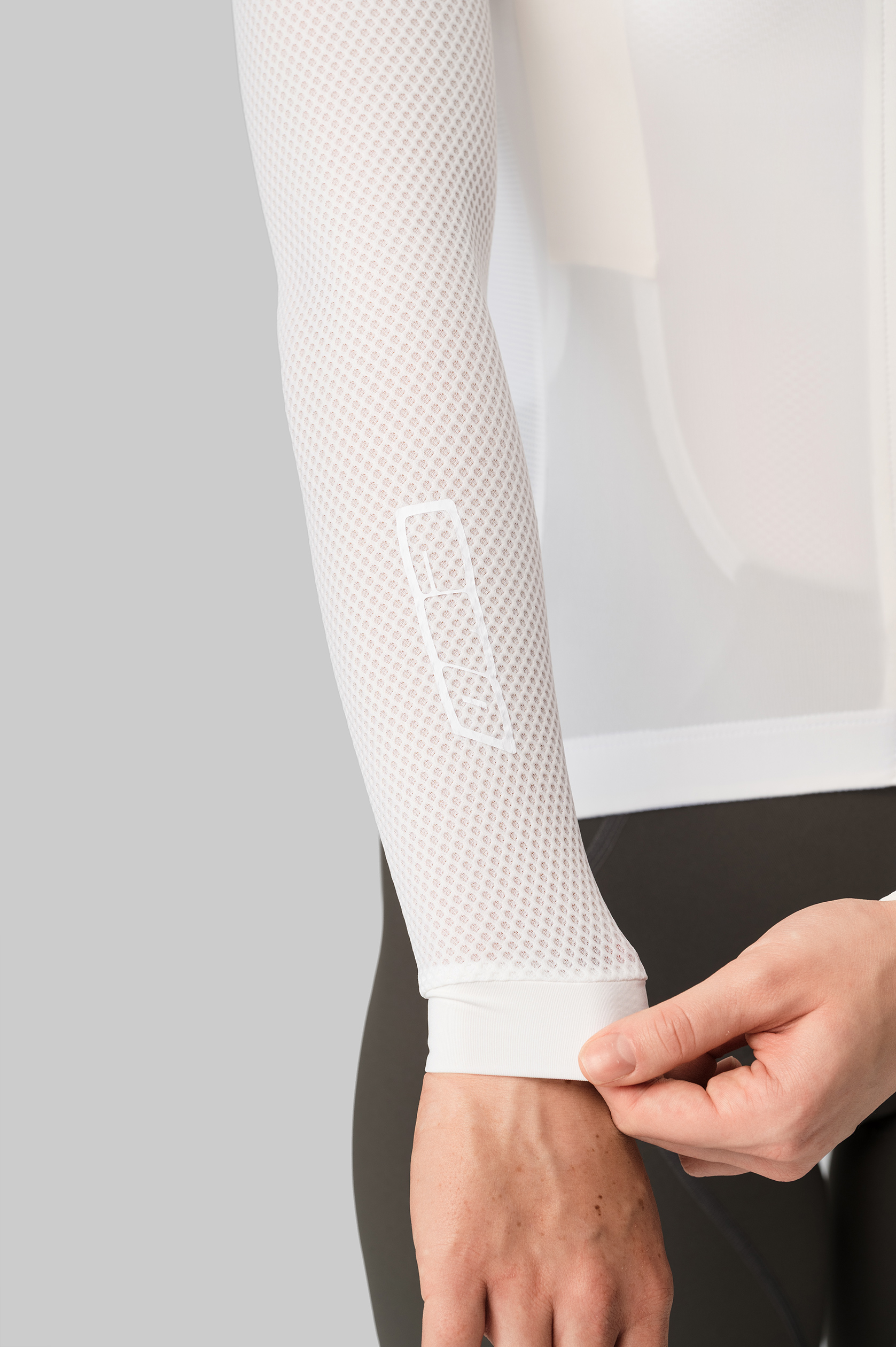 - длинные рукава из фактурной дышащей ткани с трёхмерной структурой, напоминающей соты