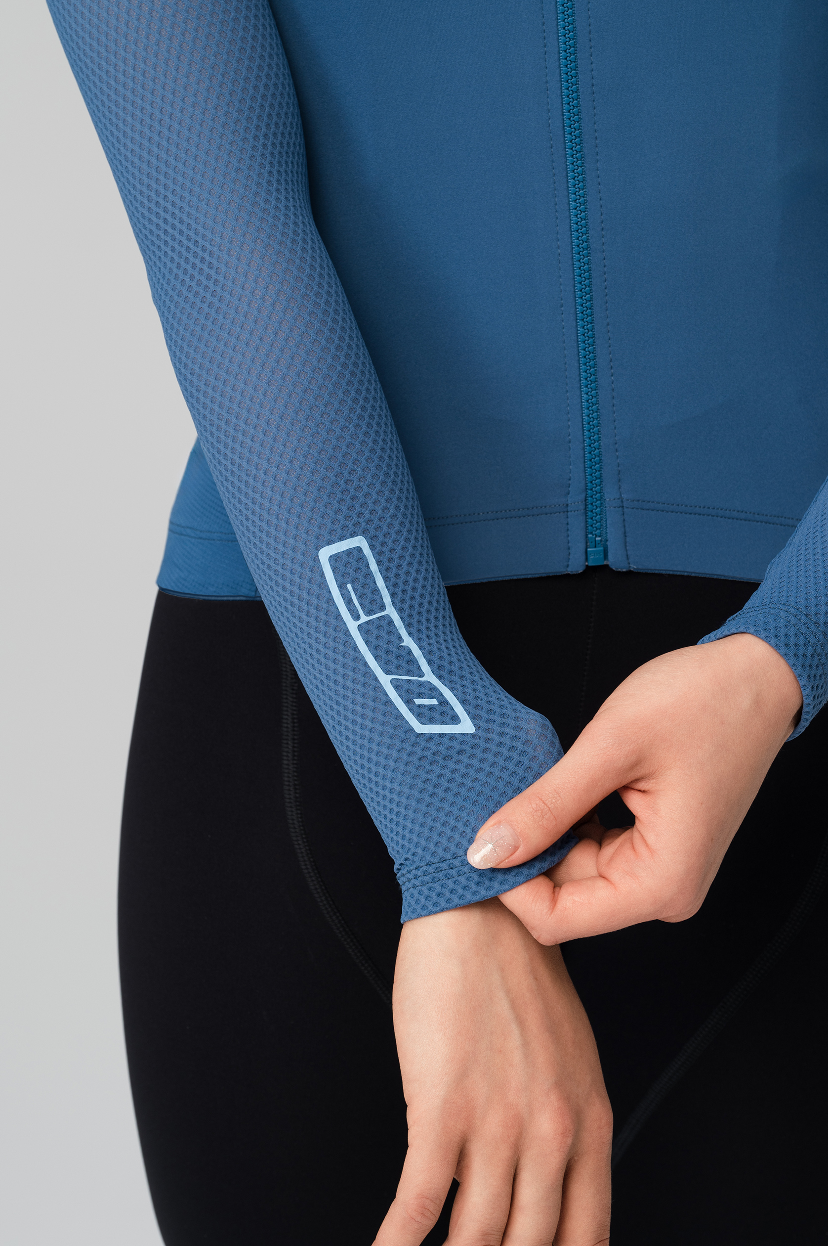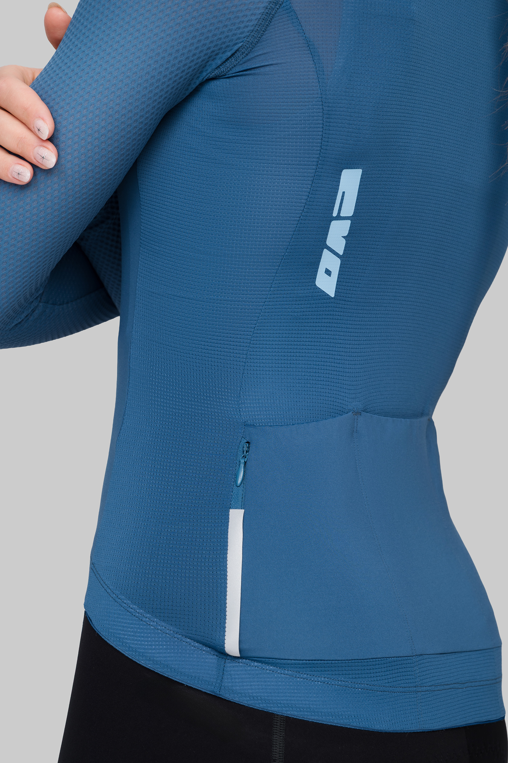 - длинные рукава из фактурной дышащей ткани с трёхмерной структурой, напоминающей соты