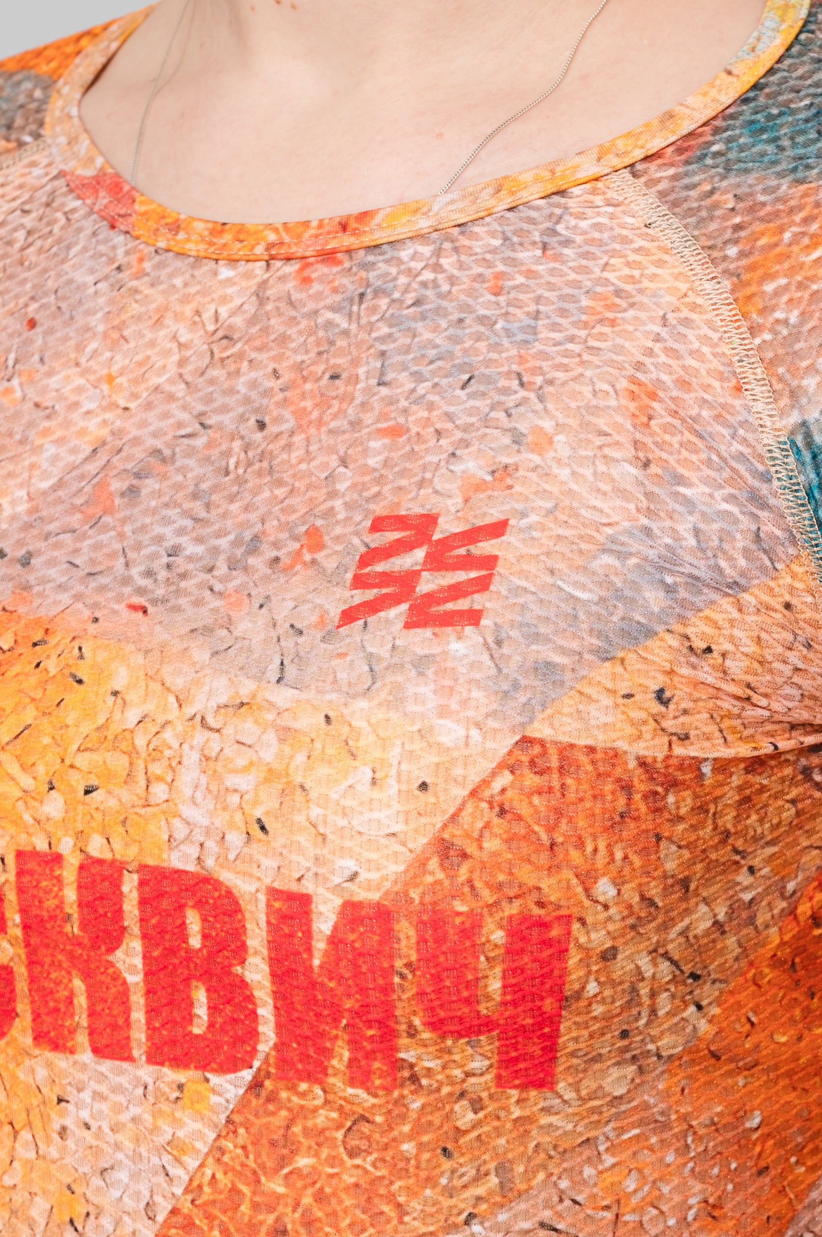 - лёгкая ткань плотностью 80 г/м2 с перфорированной открытой сетчатой структурой на груди и спине для равномерного распределения и испарения влаги
