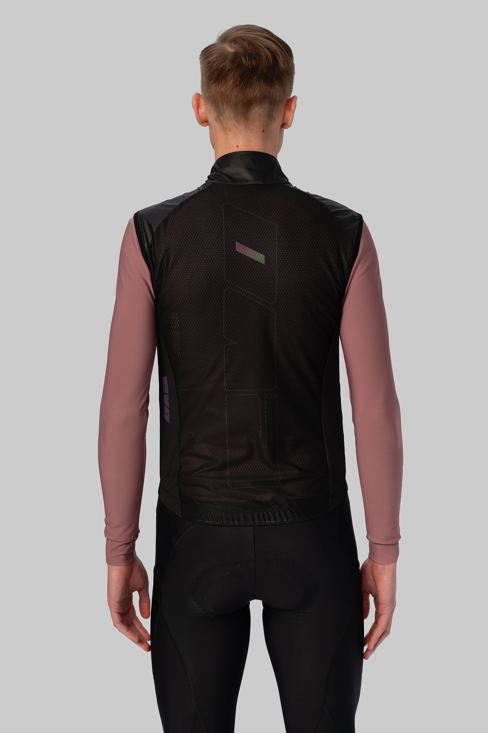 Непродуваемый материал жилетки с DWR-обработкой защищает от брызг, а сетчатая ткань на спине обеспечивает вентиляцию и помогает с терморегуляцией.