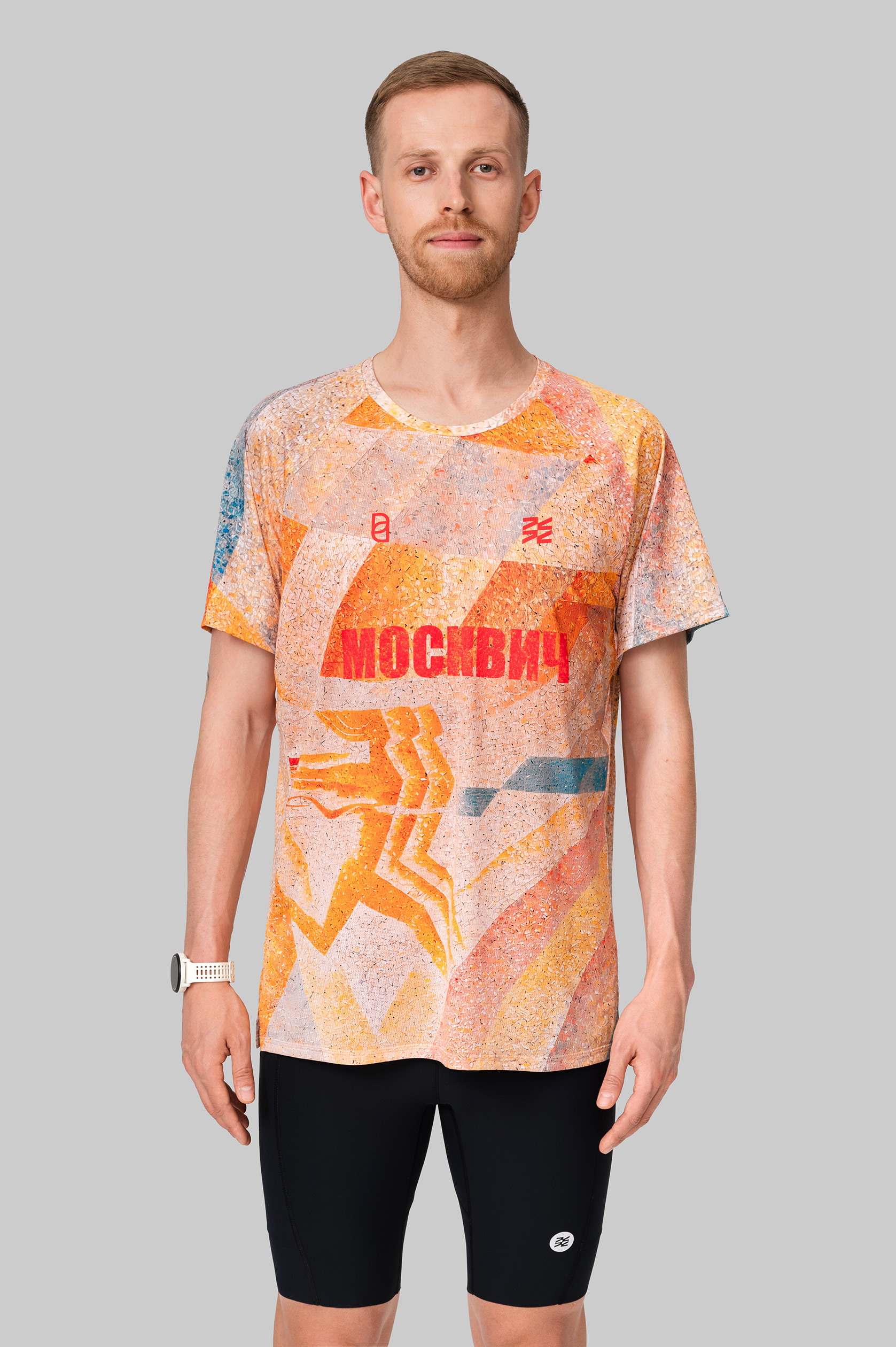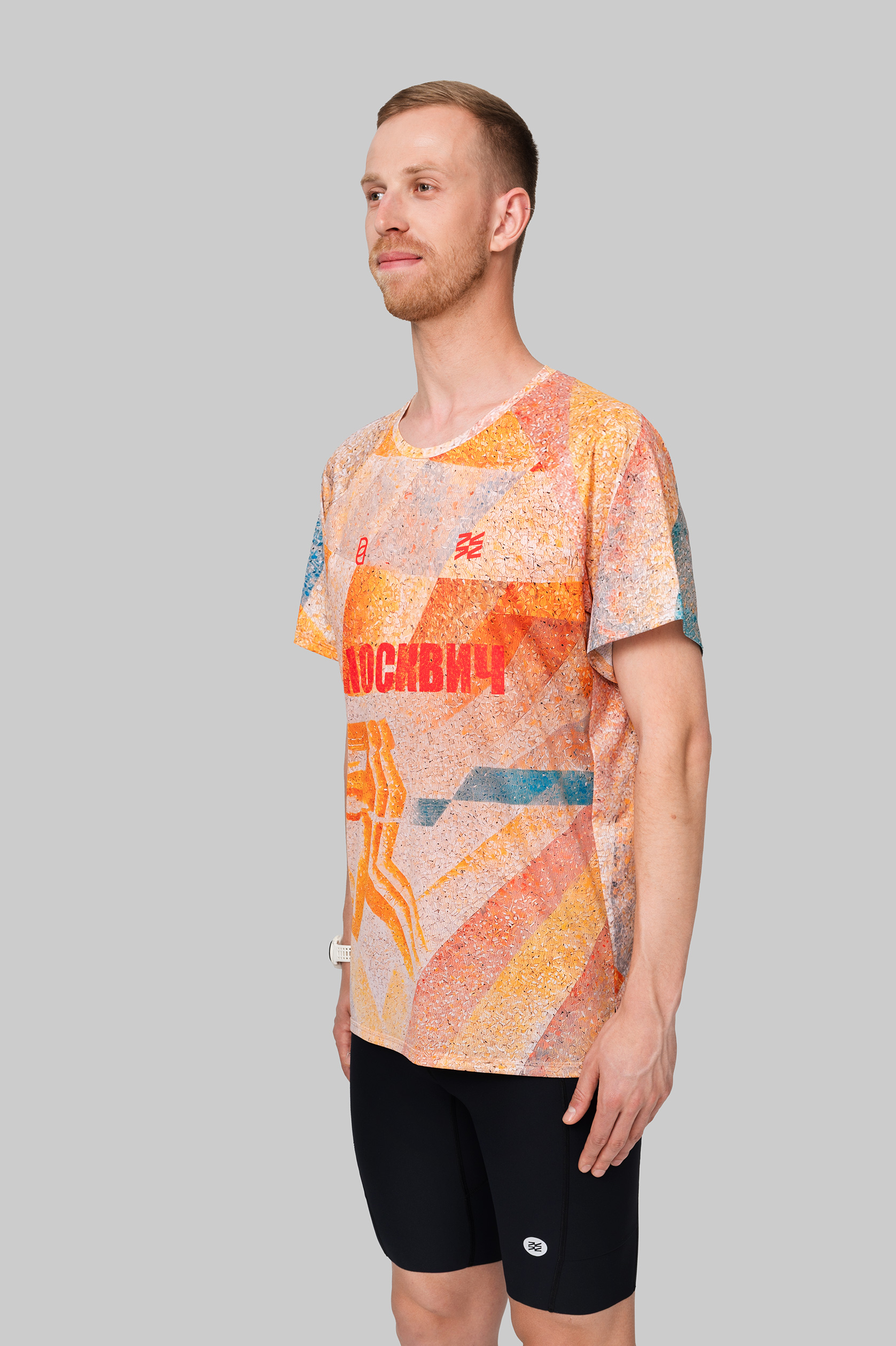 Новая модель беговой футболки для тренировок с рукавом реглан: анатомический крой, более универсальная посадка, которая одинаково хорошо работает на узких и широких плечах. Принт нанесён методом сублимационной печати, что гарантирует яркие цвета и долговечность. Футболка сделана из почти невесомой итальянской ткани с дышащими и влагоотводящими свойствами.