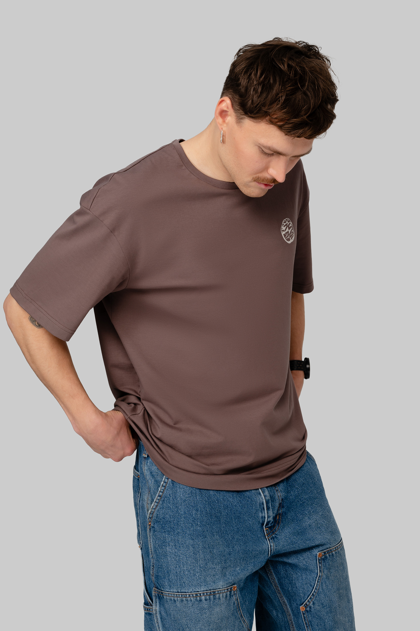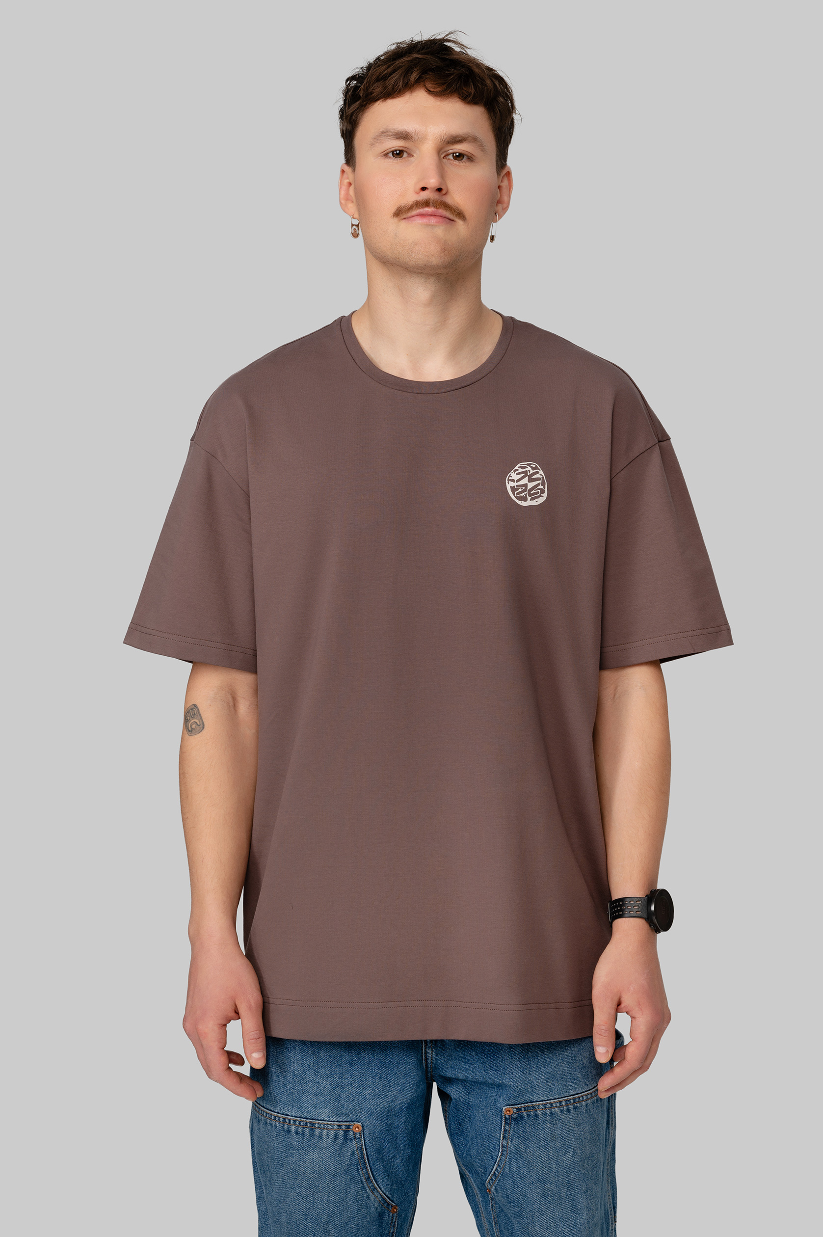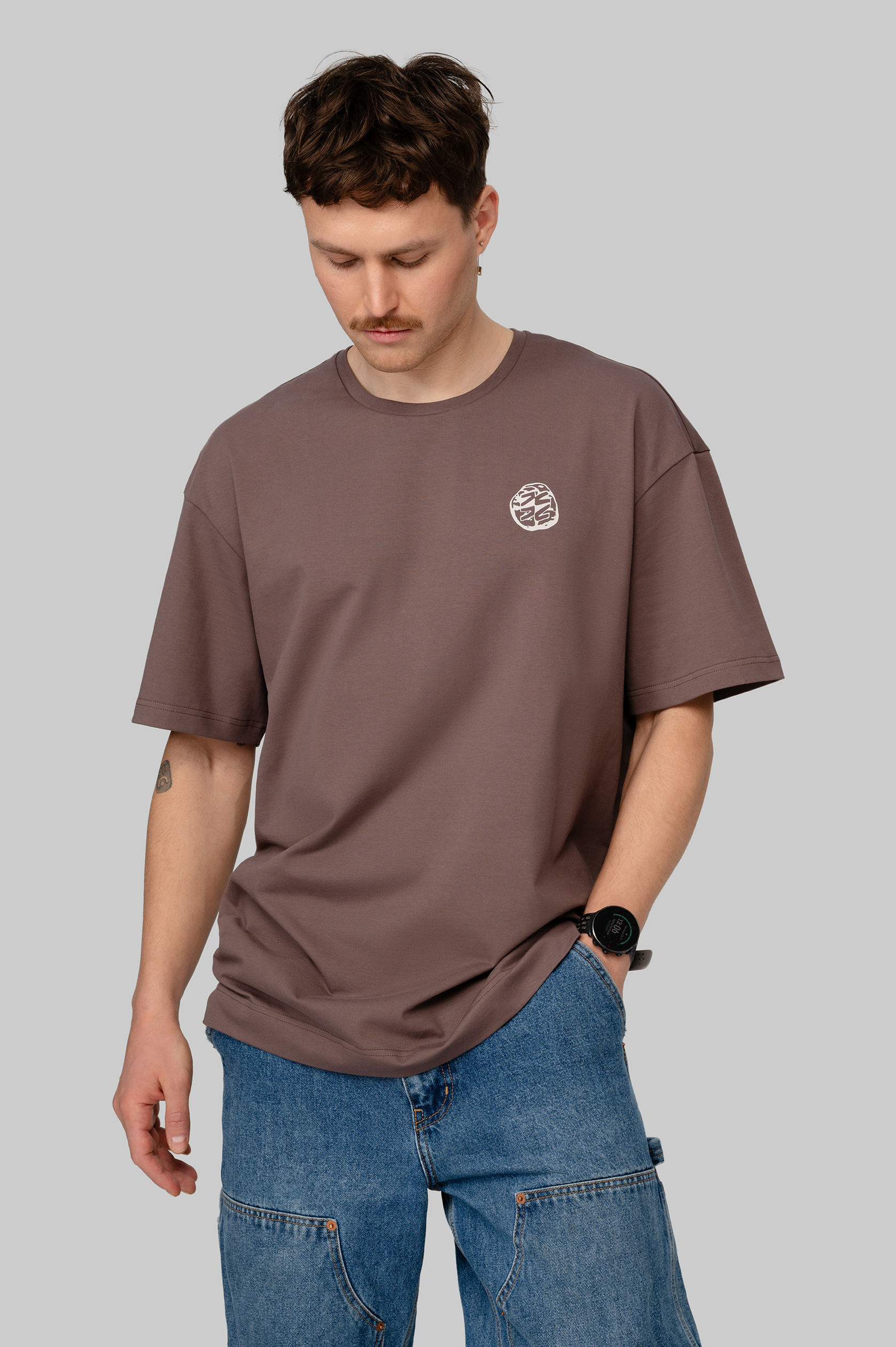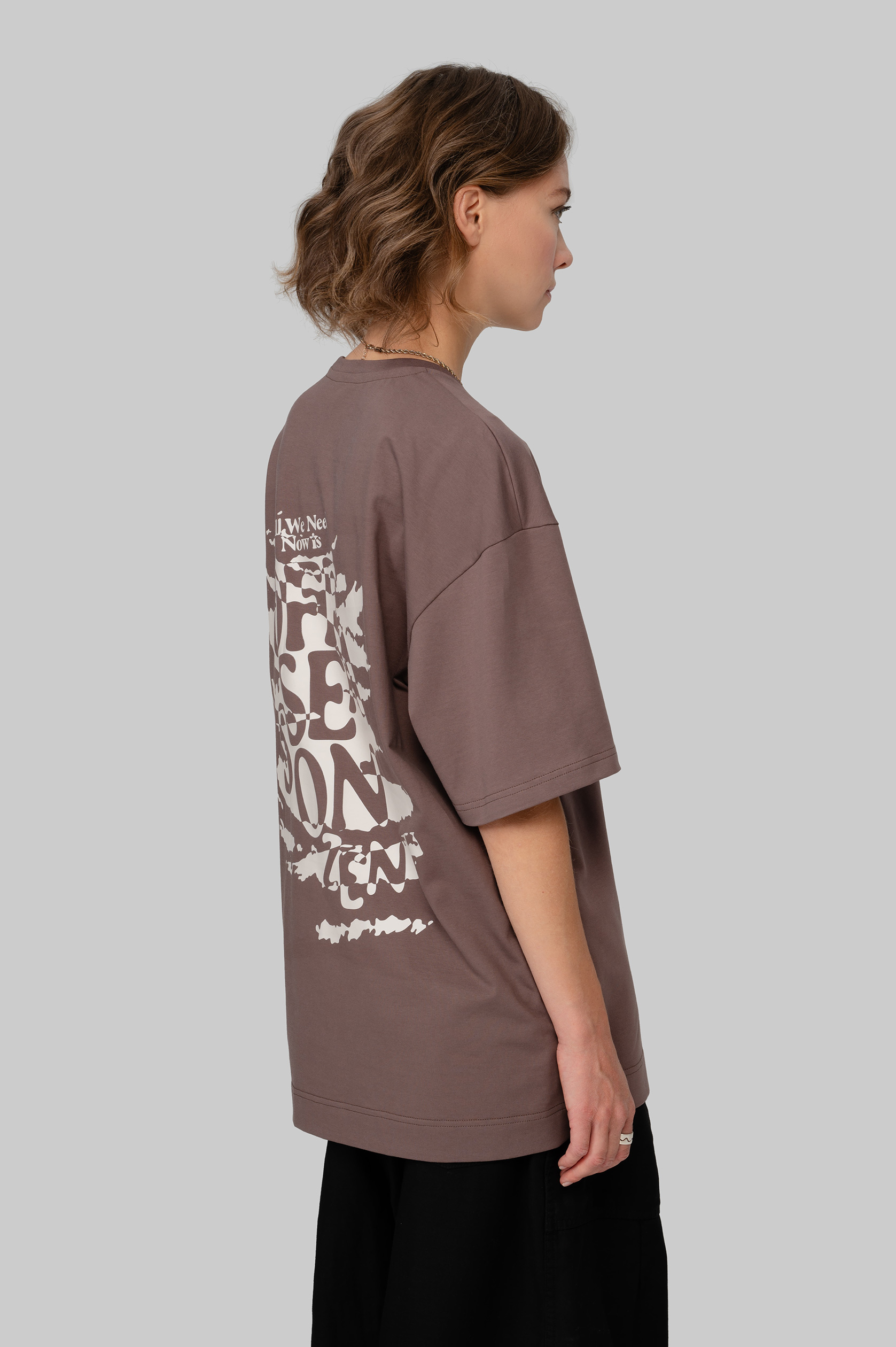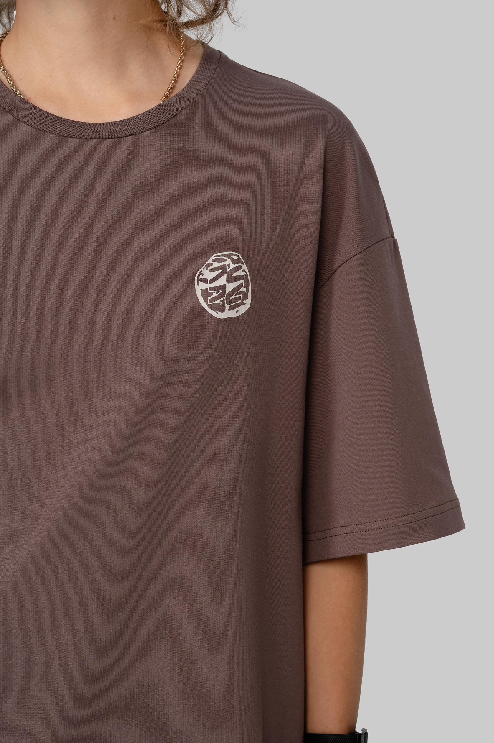 Футболка оверсайз из плотного хлопка с бархатистым верхним слоем. Воротник выполнен из мягкой рибаны. Дизайн нанесён с помощью устойчивой к стирке технологии DTF. Футболка упакована в брендированный мешок из твила с клапаном.