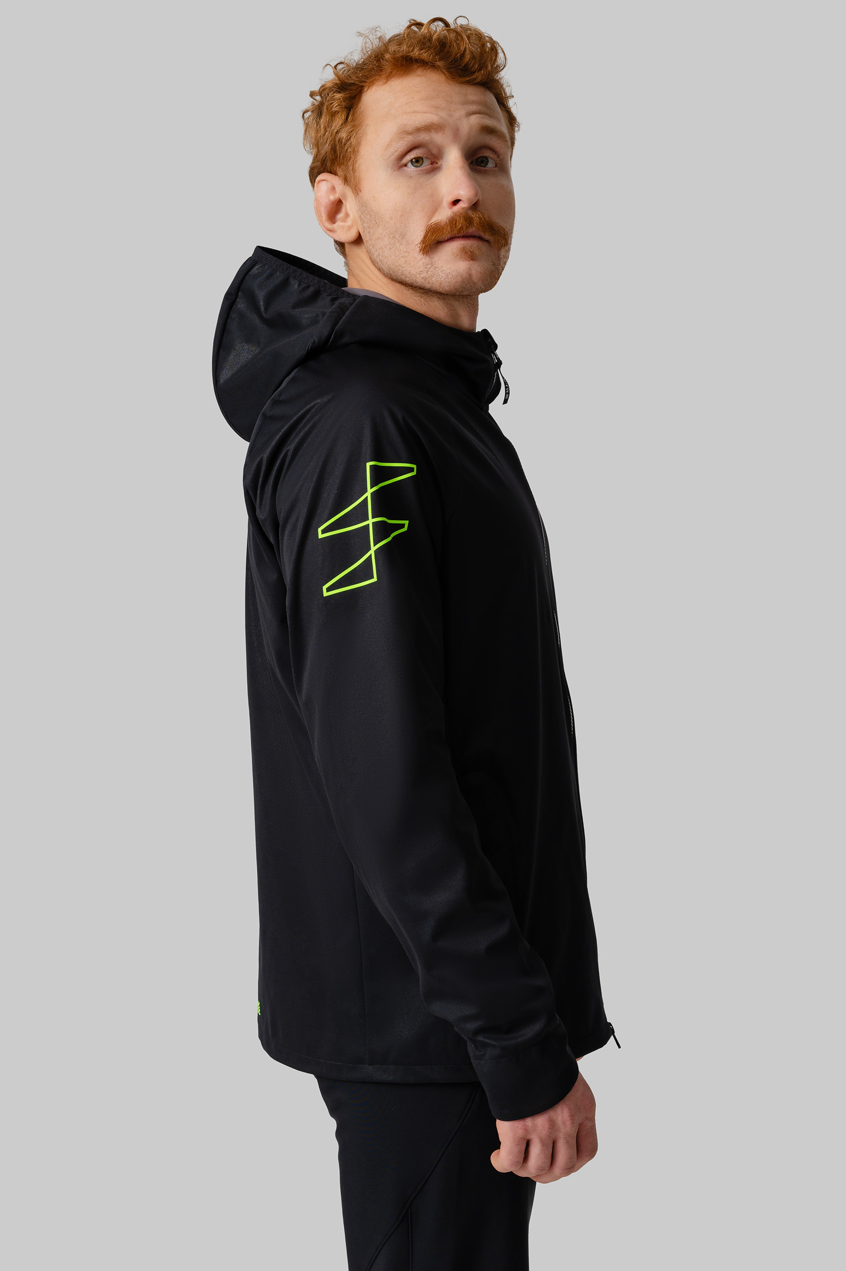 Беговая ветровка сделана из легчайшей итальянской трёхслойной ткани с мембранным слоем и DWR-обработкой, которая защитит вас от дождя и ветра. Эластичный материал ветровки не стесняет движений во время разминки и пробежки.