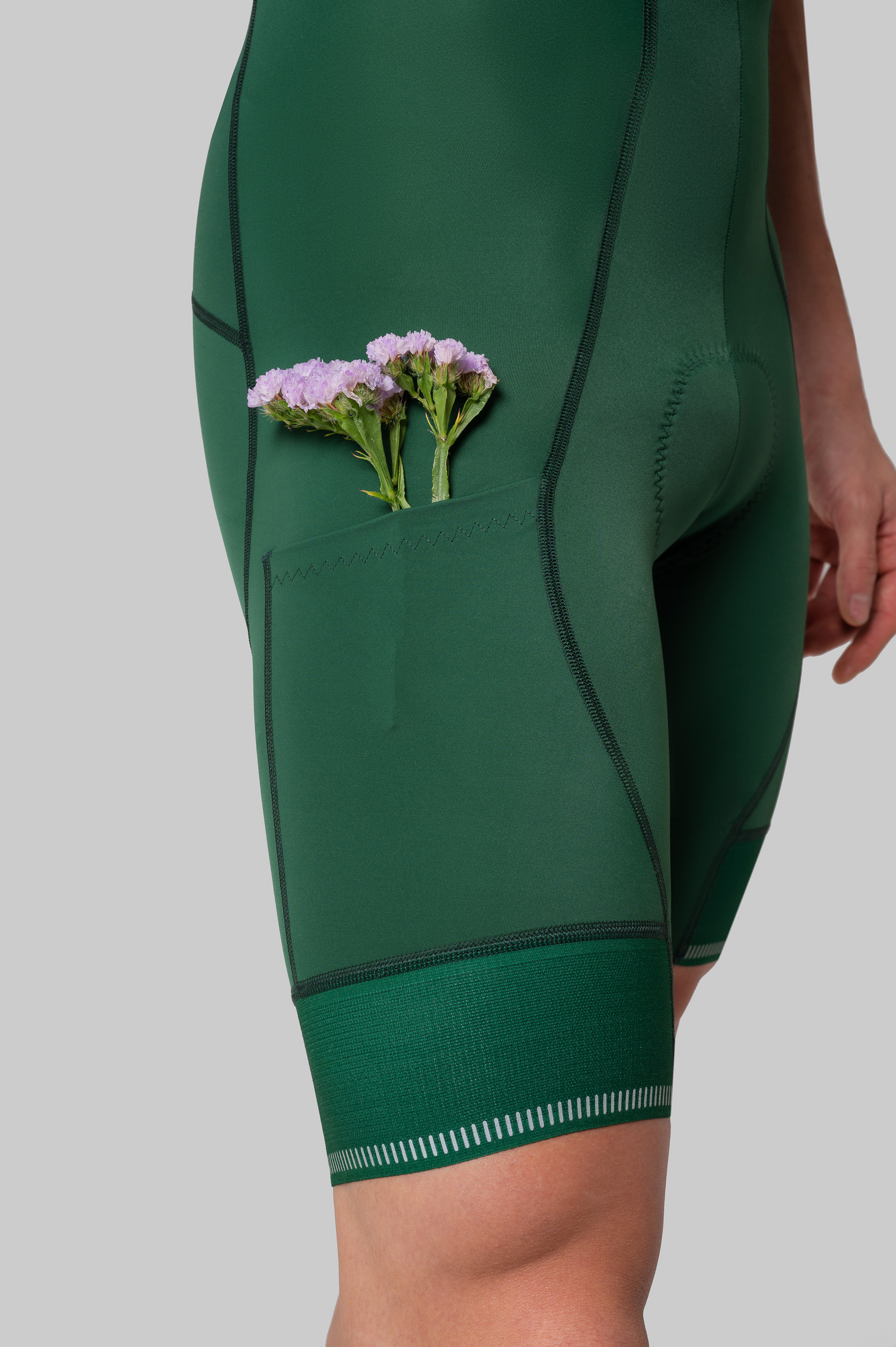 Два вместительных кармана на бедрах вмещают еду, воду, телефон и даже фотоаппарат. Особый крой делает их более износостойкими за счет продуманного расположения швов, а посадку — менее компрессионной по сравнению с нашими велотрусами Evolve и Progress.