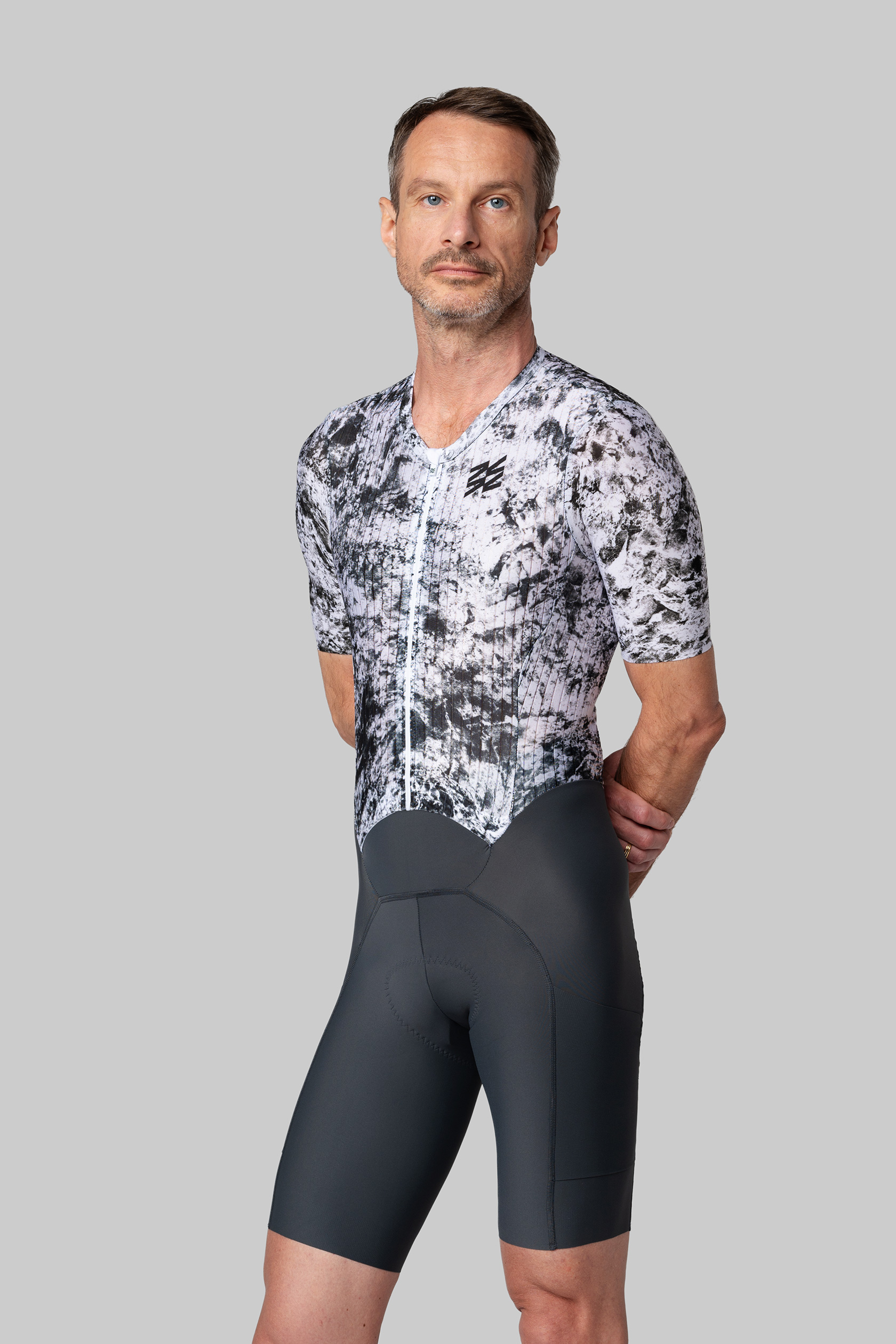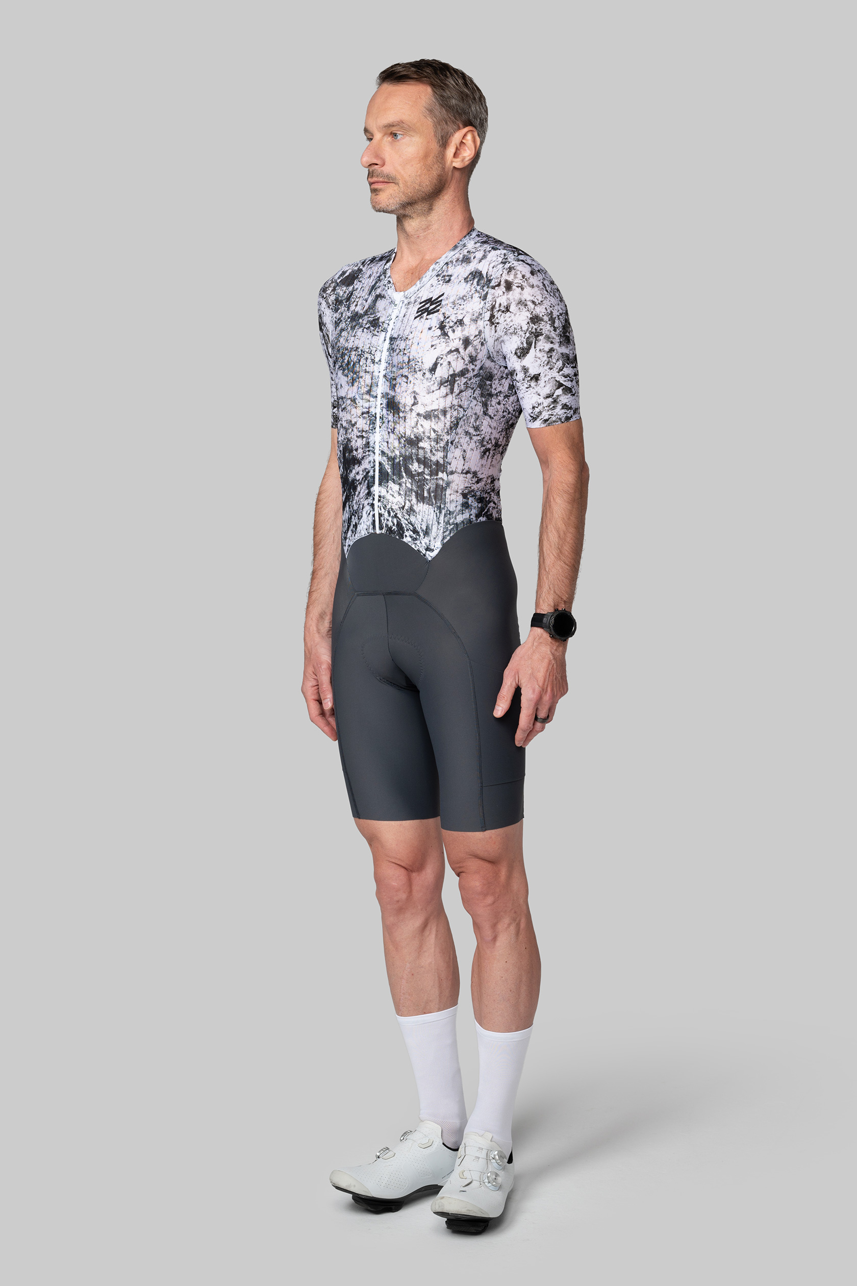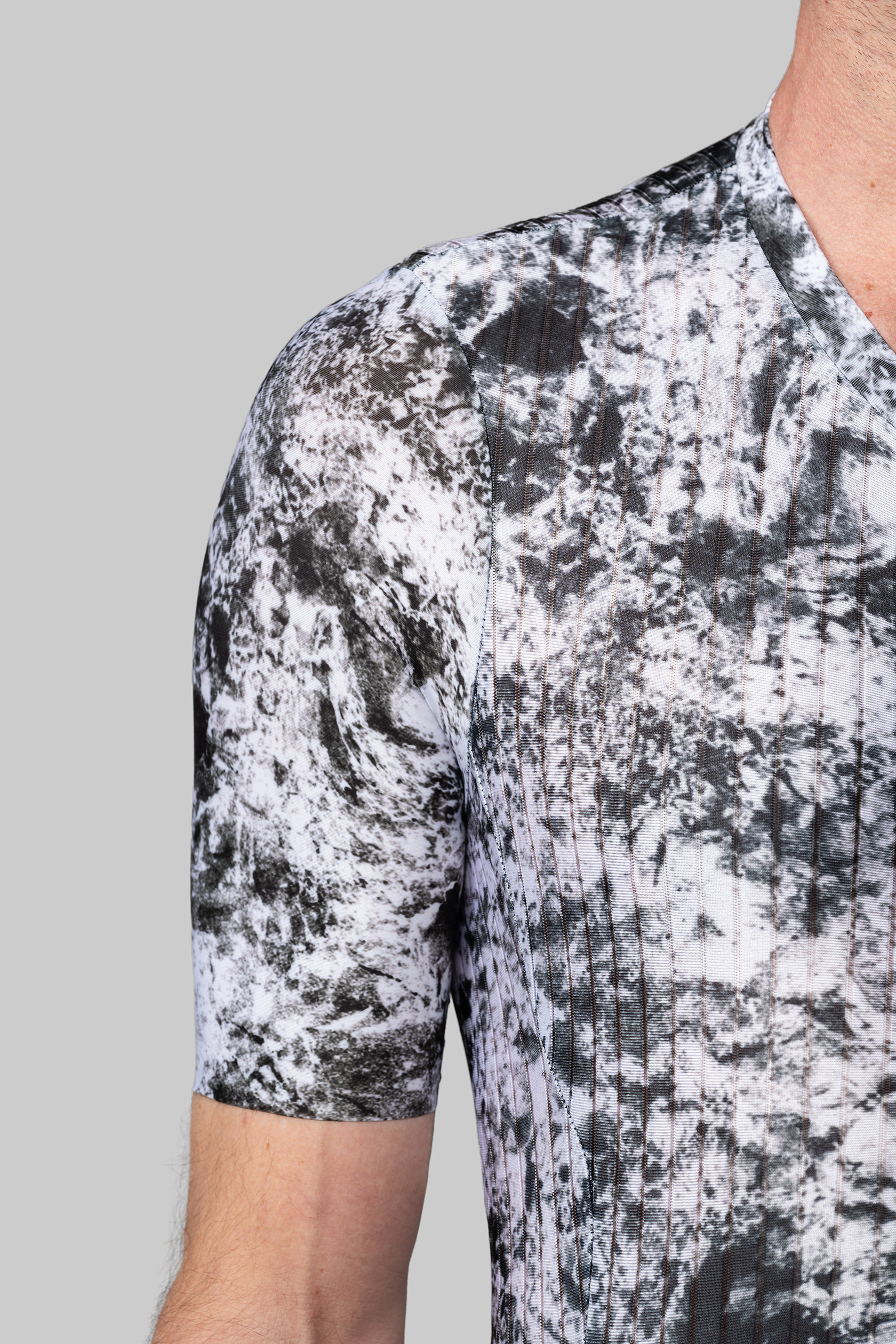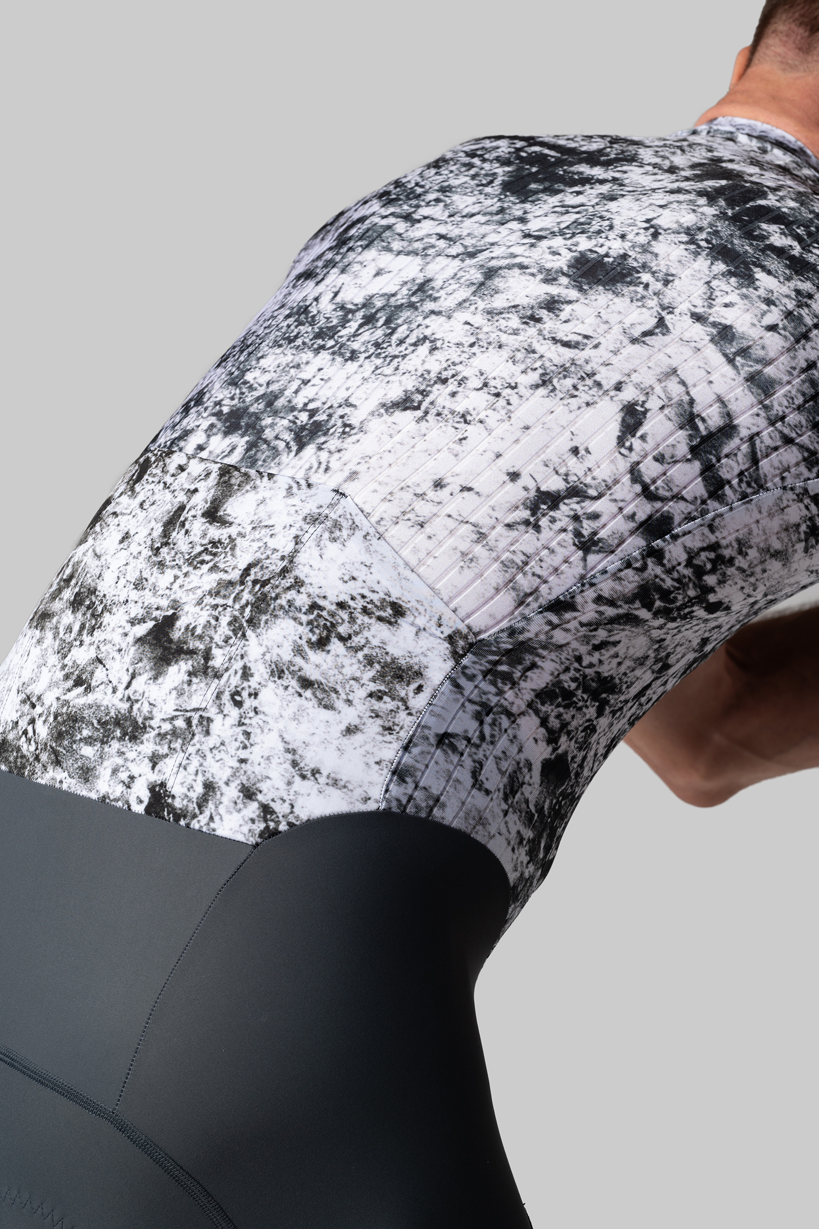 - дышащая, эластичная и компрессионная ткань с трёхмерной структурой для лучшей аэродинамики на груди, спине и рукавах