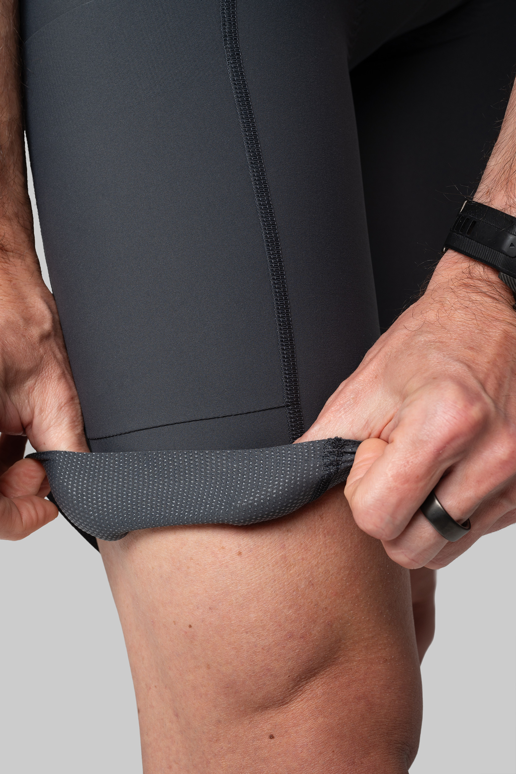 - бесшовная обработка нижнего края штанины чистым лазерным срезом с силиконовым нанесением прямо на ткань