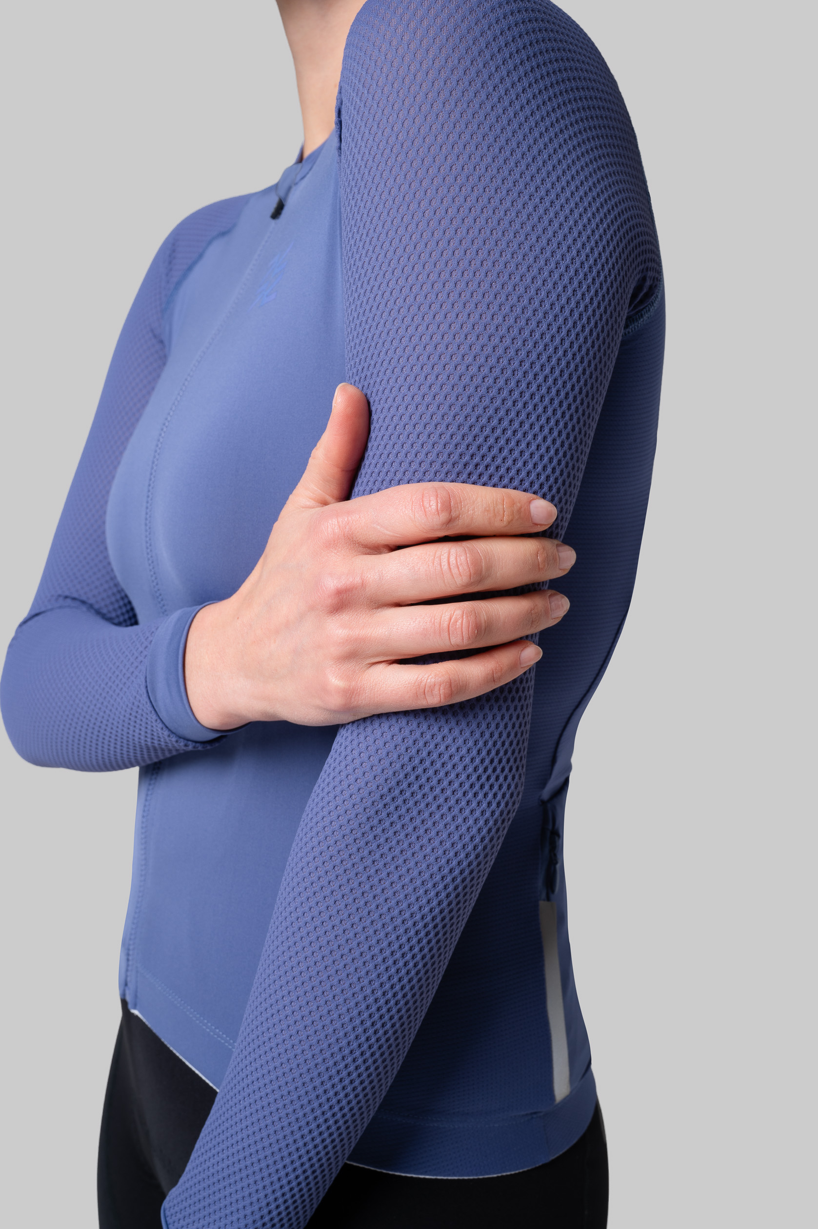 - длинные рукава из фактурной дышащей ткани с трехмерной структурой, напоминающей соты