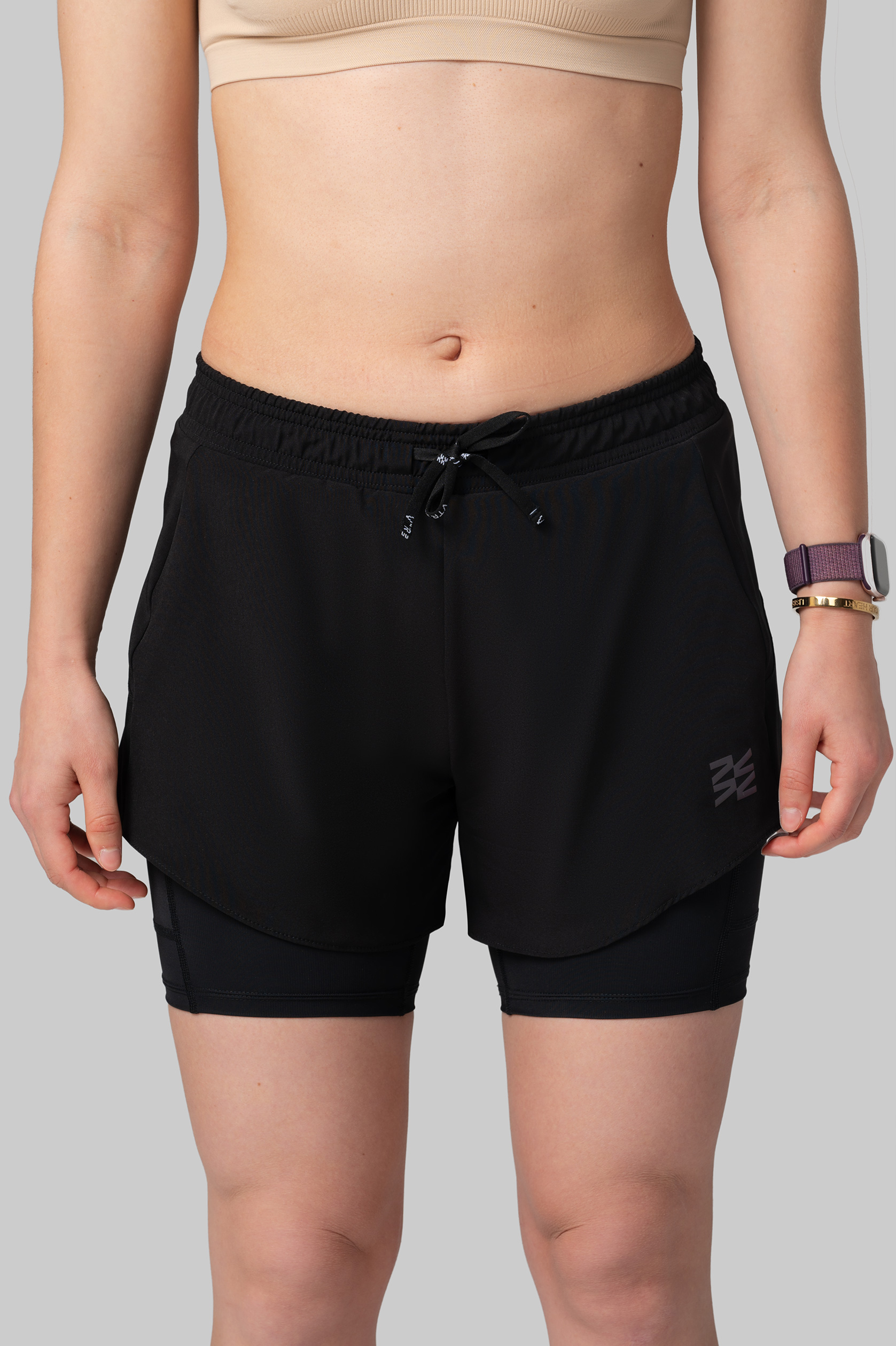 - поясной карман с клапаном на верхнем слое для ключей, карточек и мелких предметов, два набедренных кармана на внутреннем слое для смартфона, гелей или батончиков